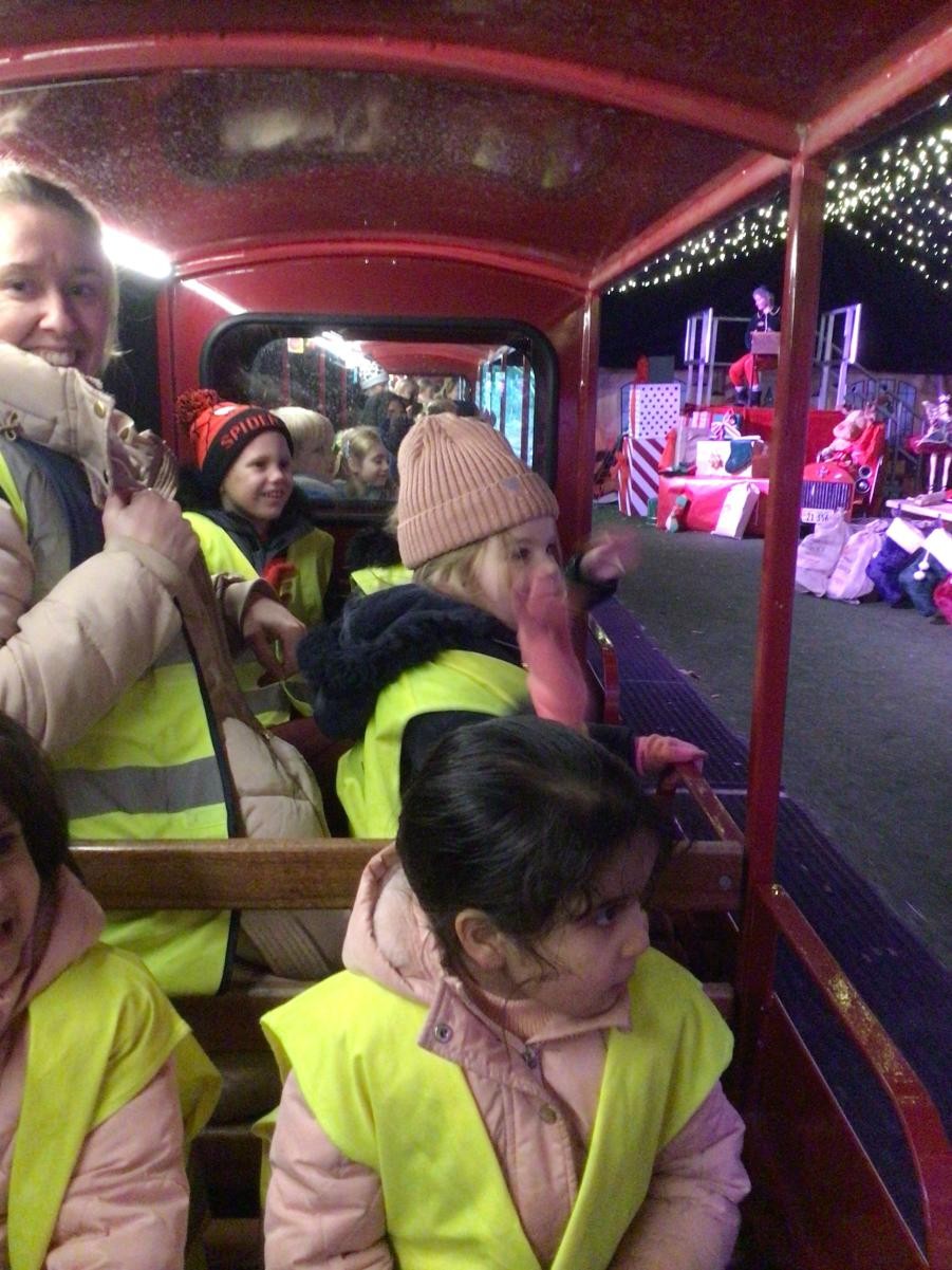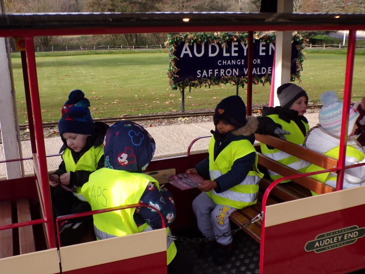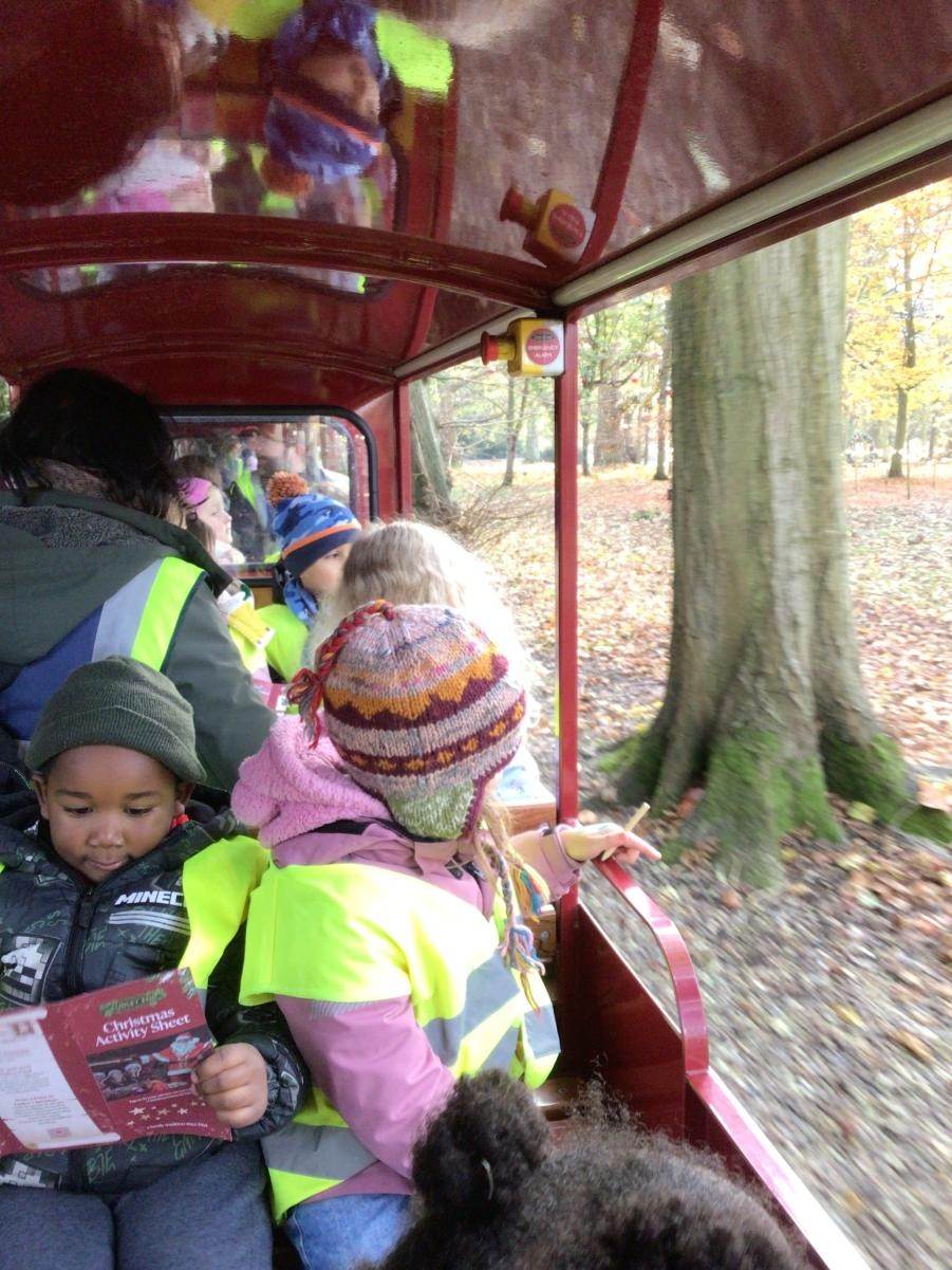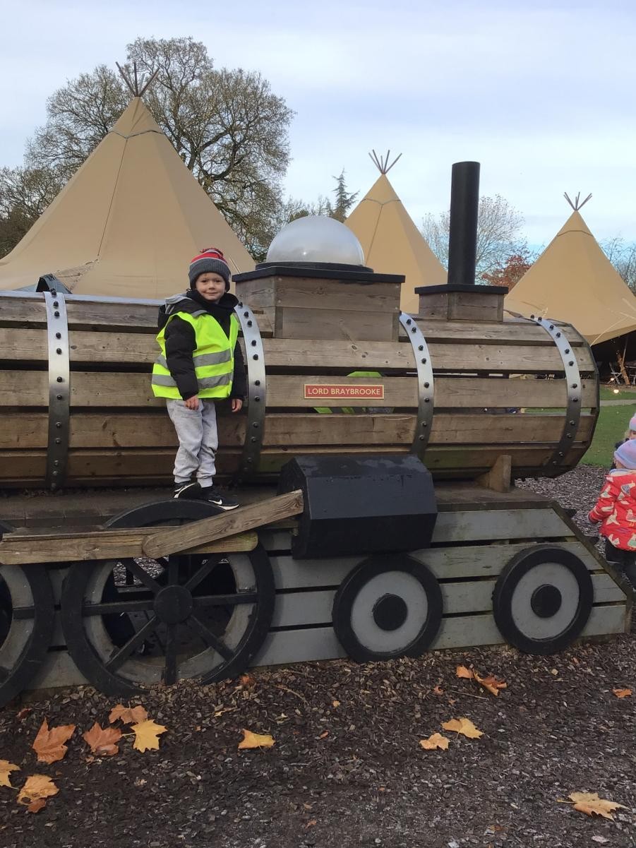 The children in Class 1 and Class 2 had a wonderful day at Audley End. We wrapped up warm and set off for a day of fun, which started with some time to enjoy playing in the awesome outdoor adventure play area. Next, it was a quick snack before we caught our train, which set off through tunnels and festive displays; finally leading us to a special show in the woods. Children were thrilled to receive a gift from a very special person - Ho Ho Ho!