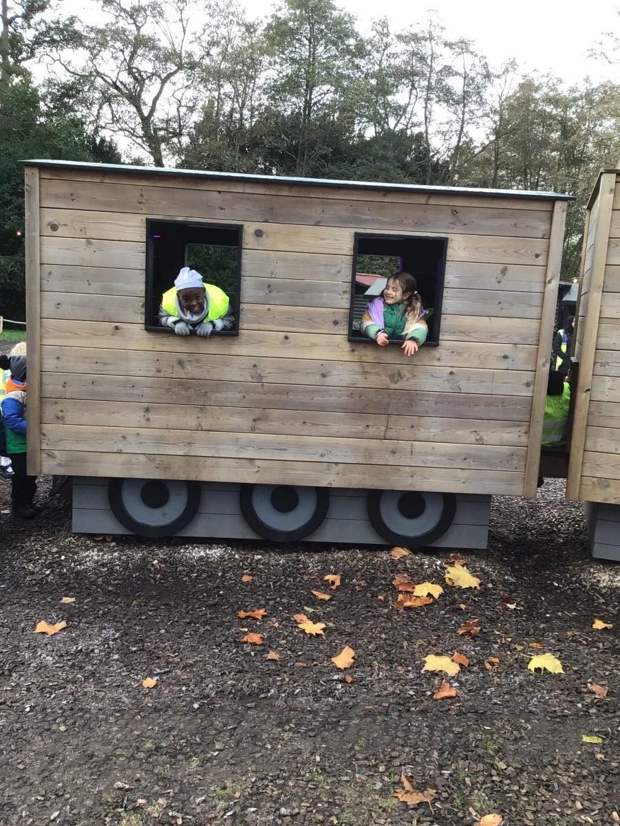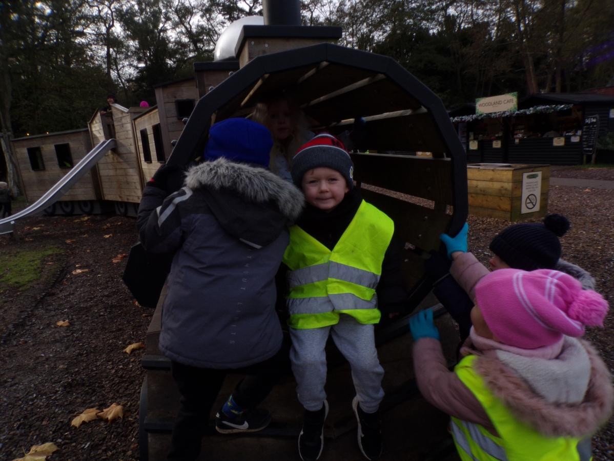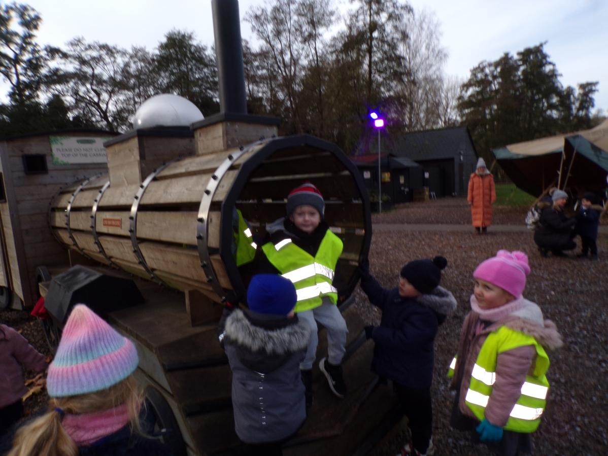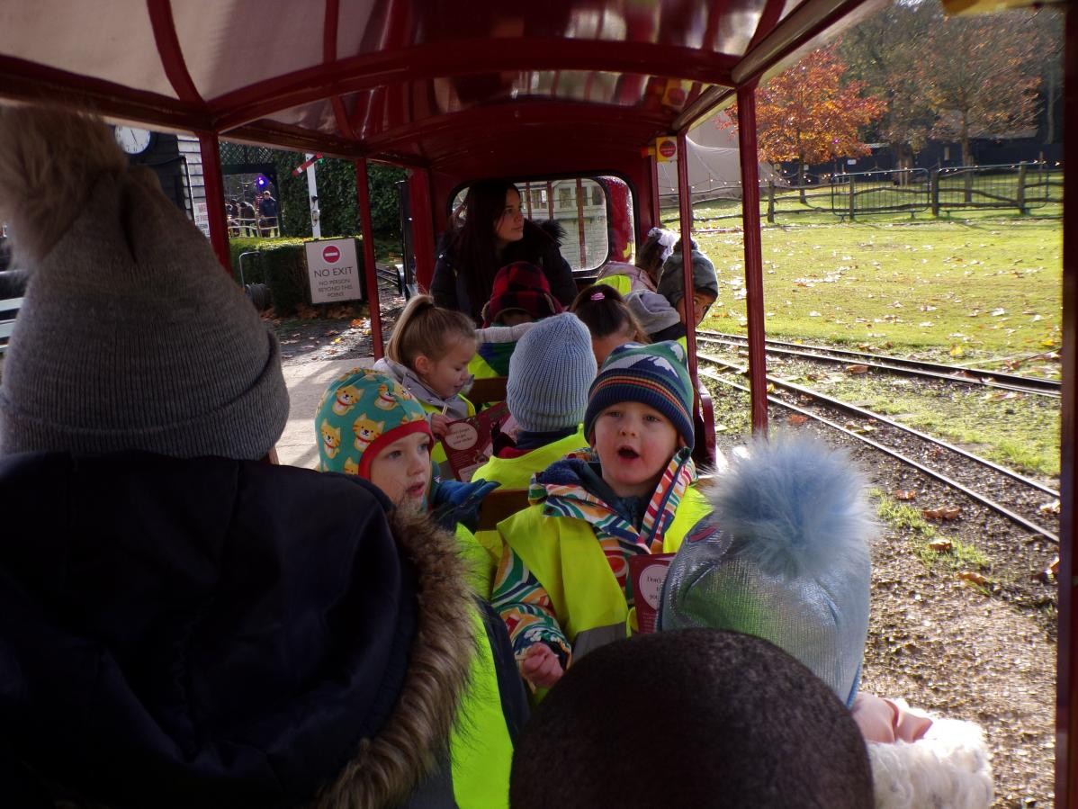 The children in Class 1 and Class 2 had a wonderful day at Audley End. We wrapped up warm and set off for a day of fun, which started with some time to enjoy playing in the awesome outdoor adventure play area. Next, it was a quick snack before we caught our train, which set off through tunnels and festive displays; finally leading us to a special show in the woods. Children were thrilled to receive a gift from a very special person - Ho Ho Ho!