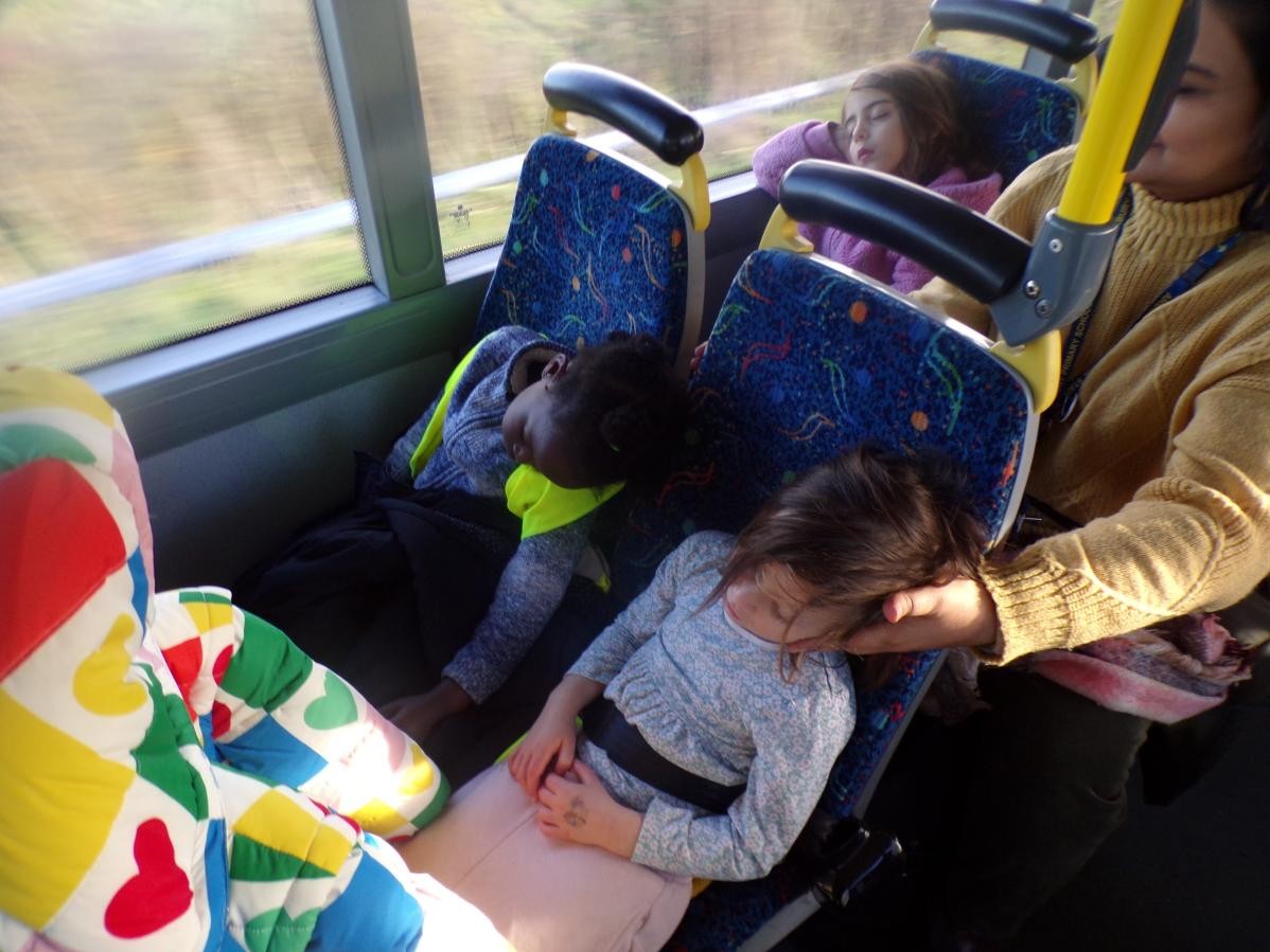 After lunch, it was time to head back to school; some children recharged their batteries with a quick nap on the coach! We all had a wonderful and busy day. We were very proud of how the children behaved on their first proper trip.