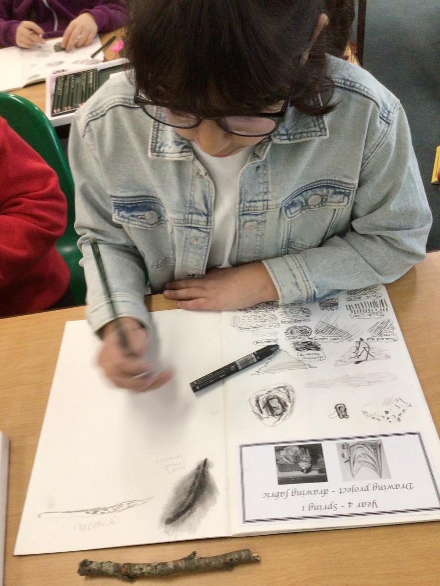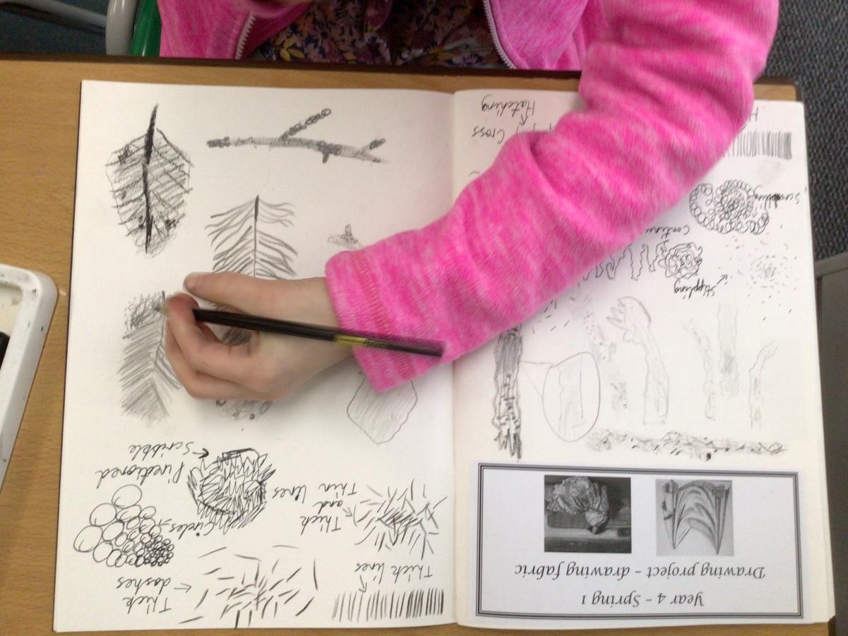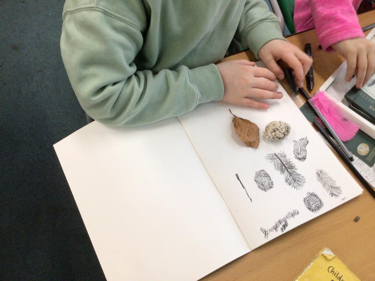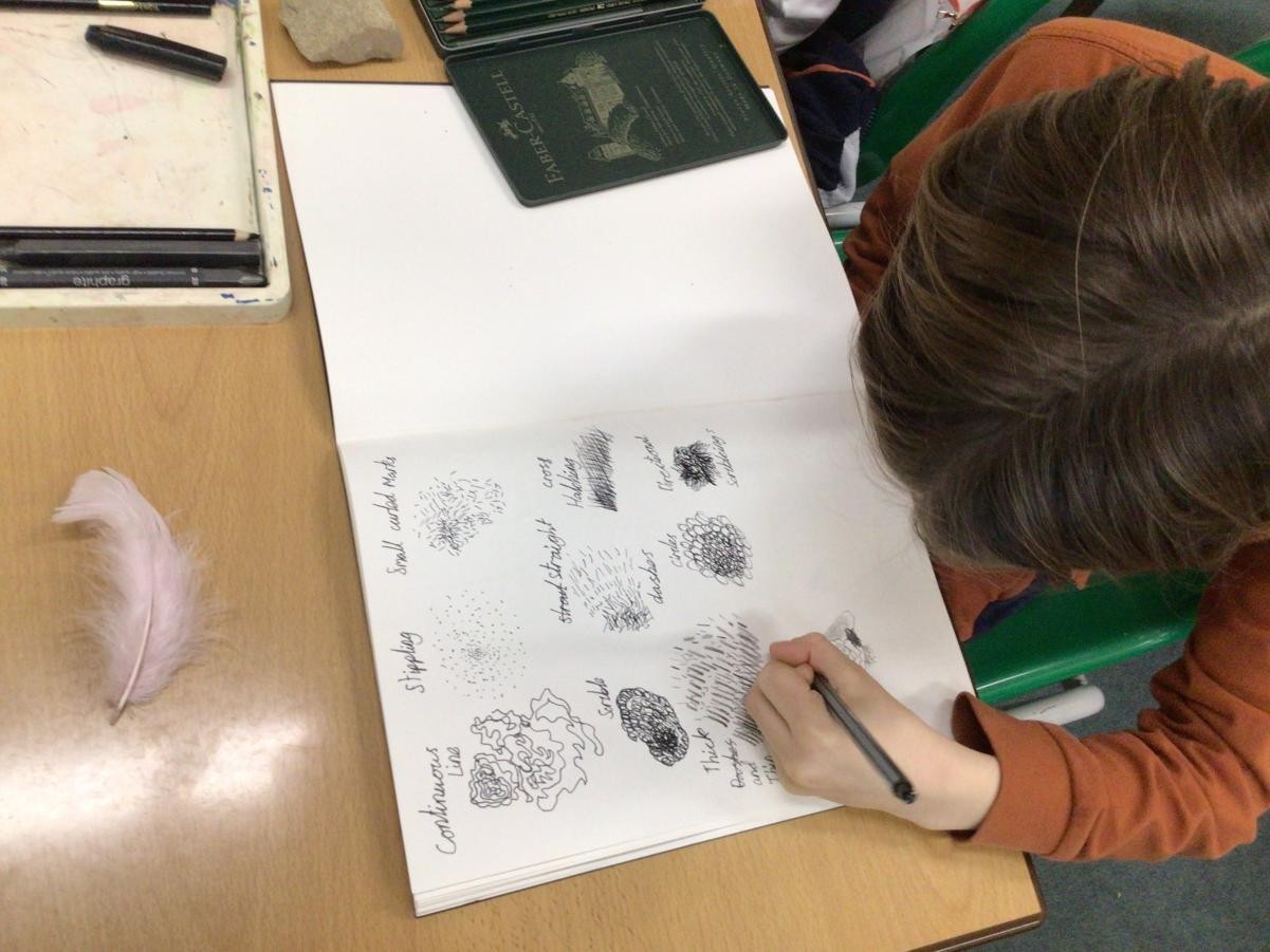 Year 4 have started completing a sketching project based on creating texture in their drawings. The children worked on making different marks such as stippling, hatching, directional dashes and curved lines to create texture. They then made close observational drawings using these techniques.