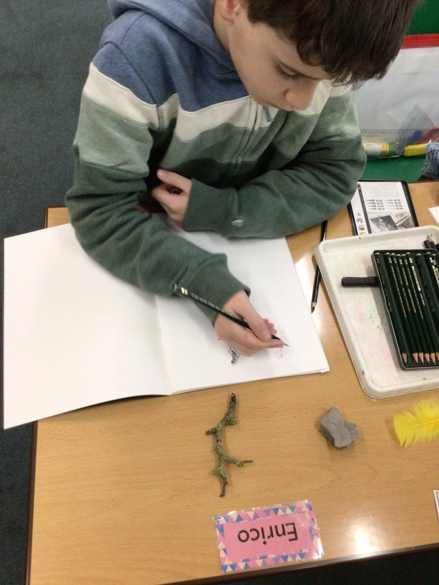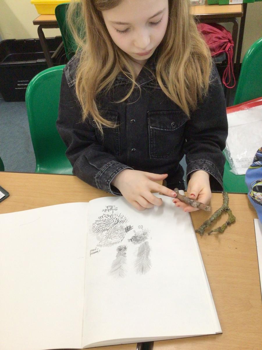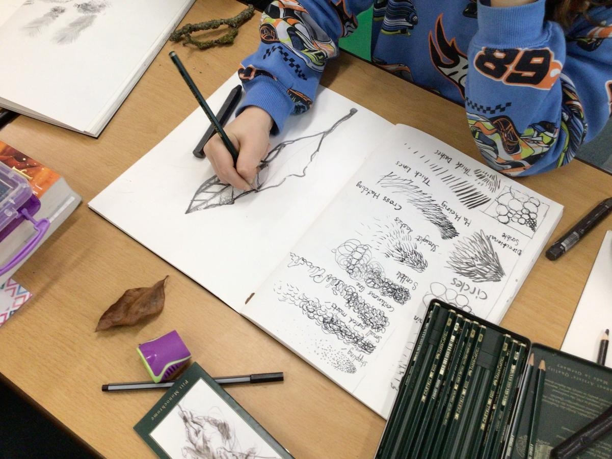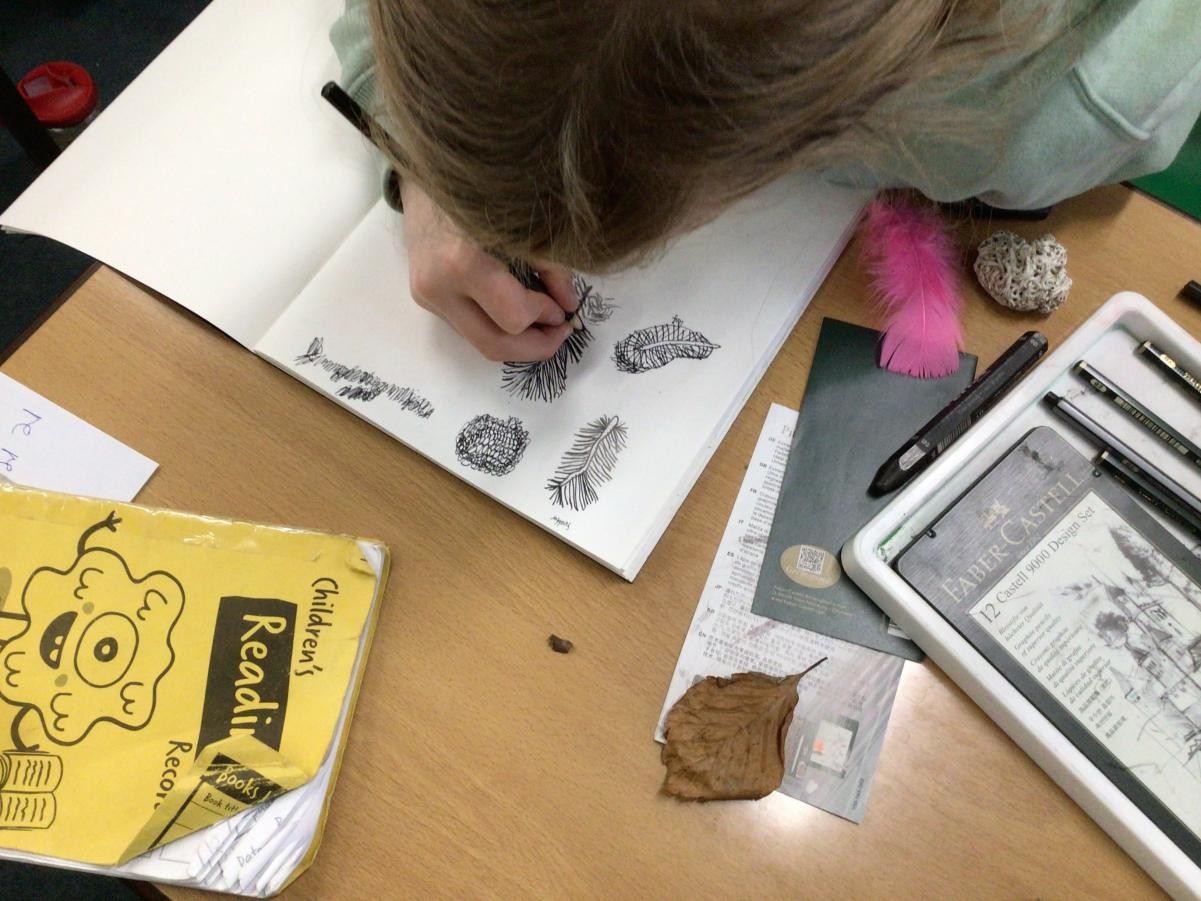 Year 4 have started completing a sketching project based on creating texture in their drawings. The children worked on making different marks such as stippling, hatching, directional dashes and curved lines to create texture. They then made close observational drawings using these techniques.